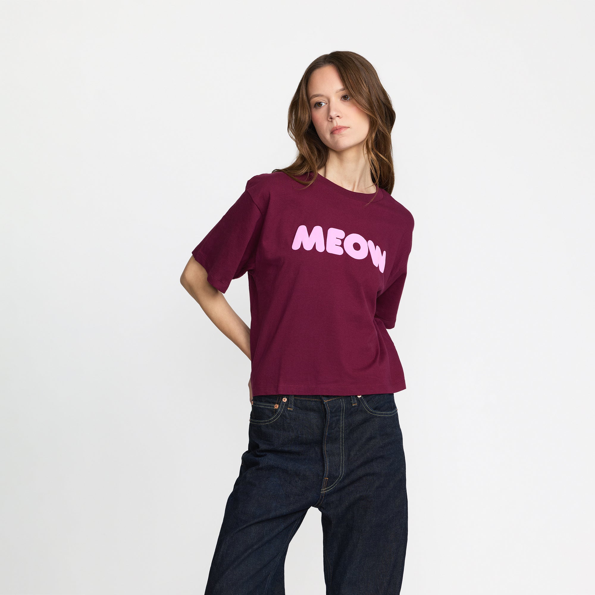 Ted & Herb Meow Crop Tee - Burgundy